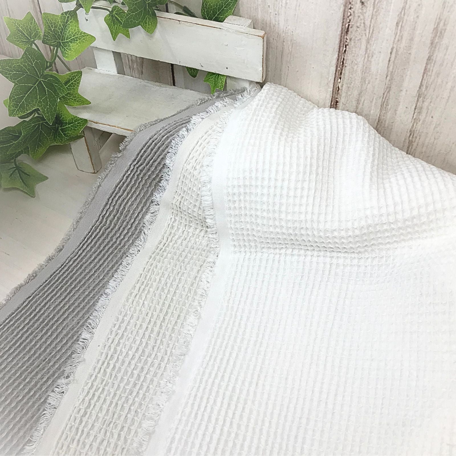※TC交織ワッフル生地は、しっかりとした厚みがあり、扱いやすいのが特徴です。無地のシンプルなデザインは、さまざまなハンドメイドプロジェクトやインテリアにマッチします。心地よい手触りと独自の風合いが作品に上品さを加え、デイリー使いから特別な日のアイテムまで、幅広くお楽しみいただけます。扱いやすさとデザイン性を兼ね備えたこの生地で、思いのままの作品作りをお楽しみください。